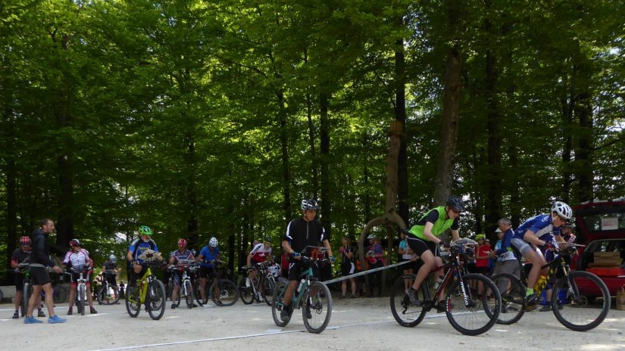 Prächtiges Frühlingswetter, blühende Bäume und leuchtende Rapsfelder, die zwischen den Baumstämmen hervorlugten, begrüssten die knapp hundert Teilnehmenden gestern Samstag am 3. Biberister Bike-OL, der als Schweizer Meisterschaft im Massenstart auf der Karte Martinsflue ausgetragen wurde. Ein Wettkampf mit Massenstart verspricht Spannung – und der Wettkampfleiter und Bahnleger Thomas Jäggi verstand es meisterhaft, diese Erwartungen zu erfüllen. Gestartet wurde in Gruppen von bis zu fünfzehn Fahrern, je nach Kategorie und Bahn. Innerhalb einer Stunde waren alle Wettkämpfer/innen auf ihrer Bahn unterwegs.
