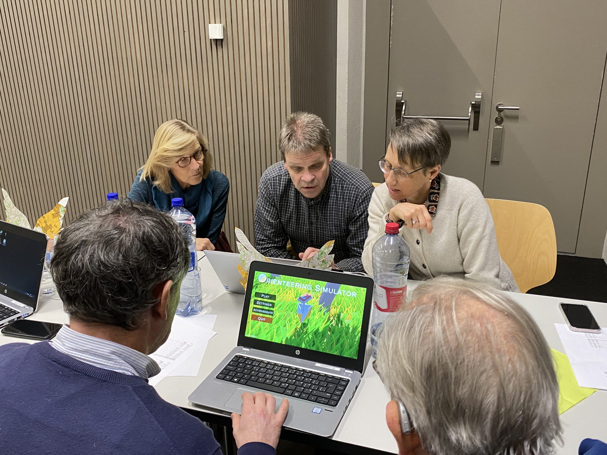 Vor dem gemeinsamen Essen präsentierte Noe Emch seine Maturaarbeit: ein OL-Simulationsspiel. Zur Freude aller liess er es nicht beim Erklären bewenden, sondern verteilte einen Stapel Laptops. Und los ging es mit dem Gamen!