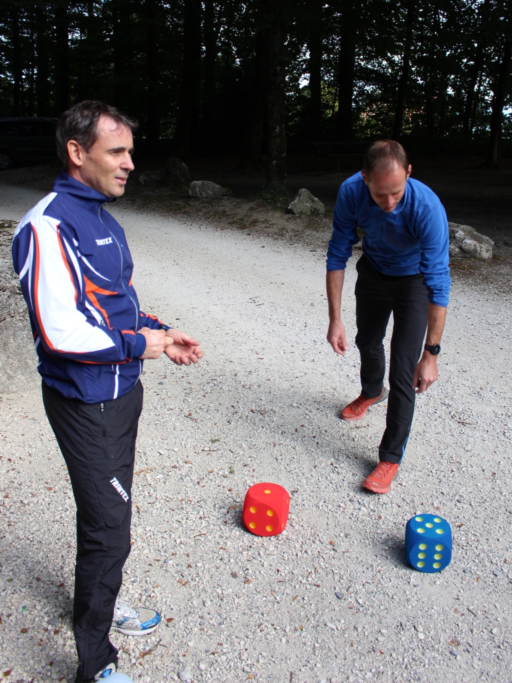 Der Anlass wurde auf der Karte Martinsfluh durchgeführt mit Ausgangspunkt beim Waldhaus Riedholz. Die WettkäpferInnen starteten in einer ersten Runde auf eine OL-Bahn, für die sie im Voraus ihre Laufzeit schätzen mussten. Die Differenz zwischen gelaufener Zeit und Schätzung ergab eine Rangliste, nach der im Jagdstartprinzip auf eine zweite OL-Runde gestartet wurde. Wer schlussendlich zuerst ins Ziel kam, lag im Zwischenklassement an der Spitze, konnte aber noch nicht jubeln. Denn nun kam das dritte Element ins Spiel – die Würfel. Je nach gewürfelten Punkten wurde jetzt nämlich die Laufzeit prozentual gekürzt und damit das Schlussklassement im wahrsten Sinne des Wortes nochmals durcheinander gewürfelt. Schlussendlich sah das Klassement wie folgt aus: 1. Rang Thomas Jäggi, 2. Rang Alina Fadel und 3. Rang Martin Gygax.